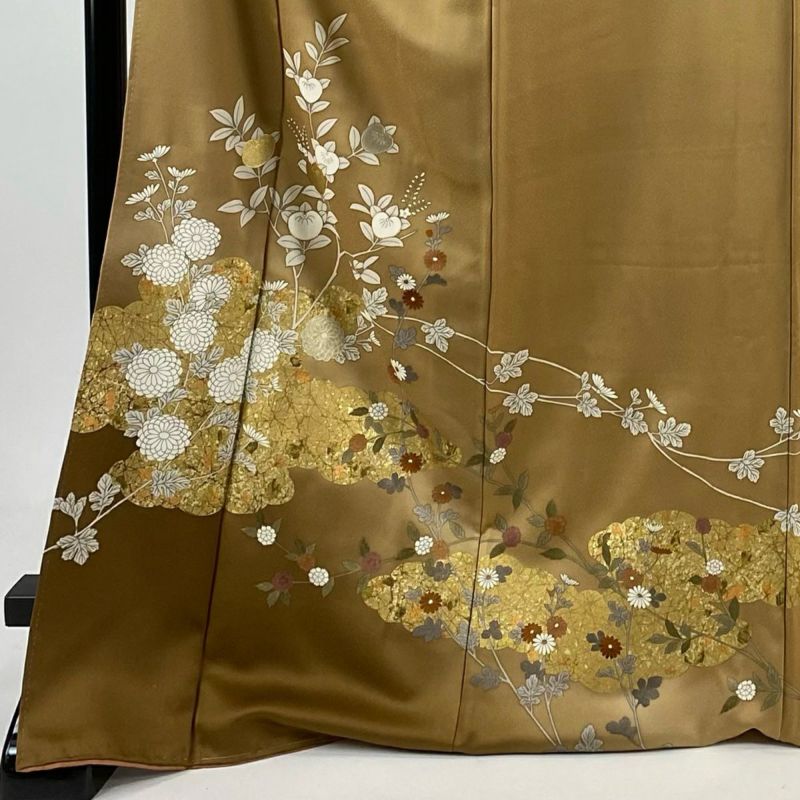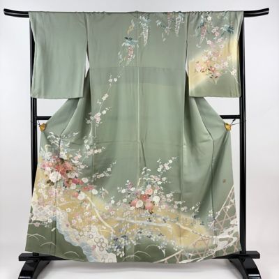 【着物ランク】秀品 【素材】正絹 【身丈】約172cm 【裄丈】約67cm 【袖丈】約50.5cm 【袖幅】約34cm 【前幅】約25cm 【後幅】約30.5cm 【サイズ】M 【着物仕立て】袷 【着用時期】10~5月 【状態ランク】ランクB 【着物着用シーン】披露宴、パーティー、お見合い、式典、茶会