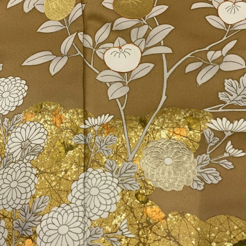 帯次第で幅広くお使いいただける素敵な訪問着です。 帯により格式を変える事の出来る印象のお着物は、様々に場面で活躍してくれることでしょう。 ※身丈・裄丈の縫込みの長さは測っておりません。 表地所々にヤケ、上前の裾付近にシミ、表地所々に金彩の変色がございます。 リユース品としては良い状態で、まだまだご活用頂けると思われます。 沢山の商品の中からご覧いただき誠にありがとうございます。