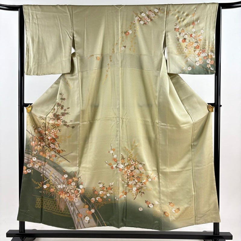 【訪問着】 灰色系 灰緑 秀品 B 約150cm~約159cm 裄丈63cm-64cm (M)size 袖丈48cm -3980 二万以下