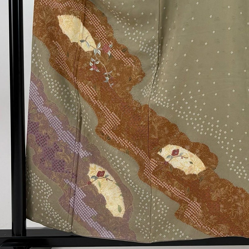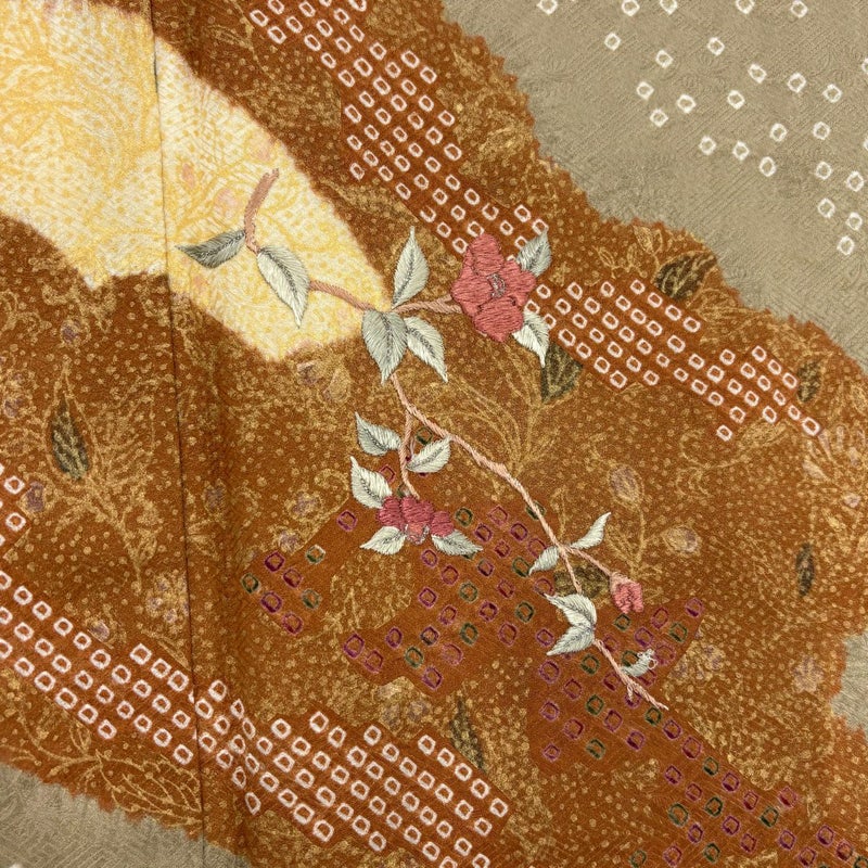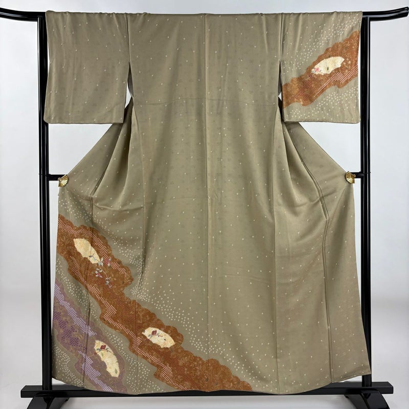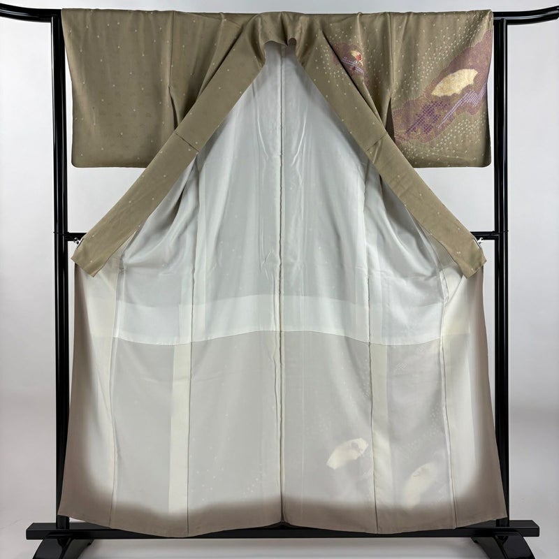 【訪問着】 茶系 薄茶色 秀品 B 約150cm~約159cm 裄丈63cm-64cm (M)size 袖丈46cm以下 -3980 二万以下