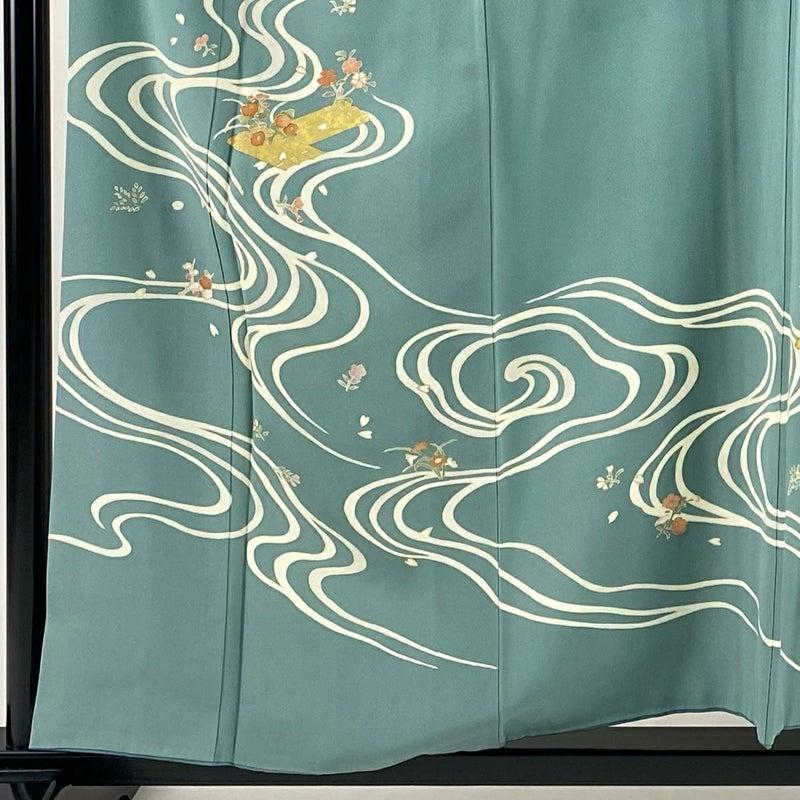 【訪問着】 灰色系 灰緑 優品 B 約150cm~約159cm 裄丈63cm-64cm (M)size 袖丈48cm 4000-7980 二万以下