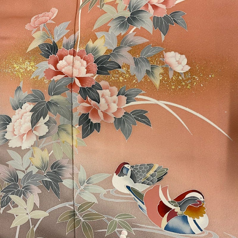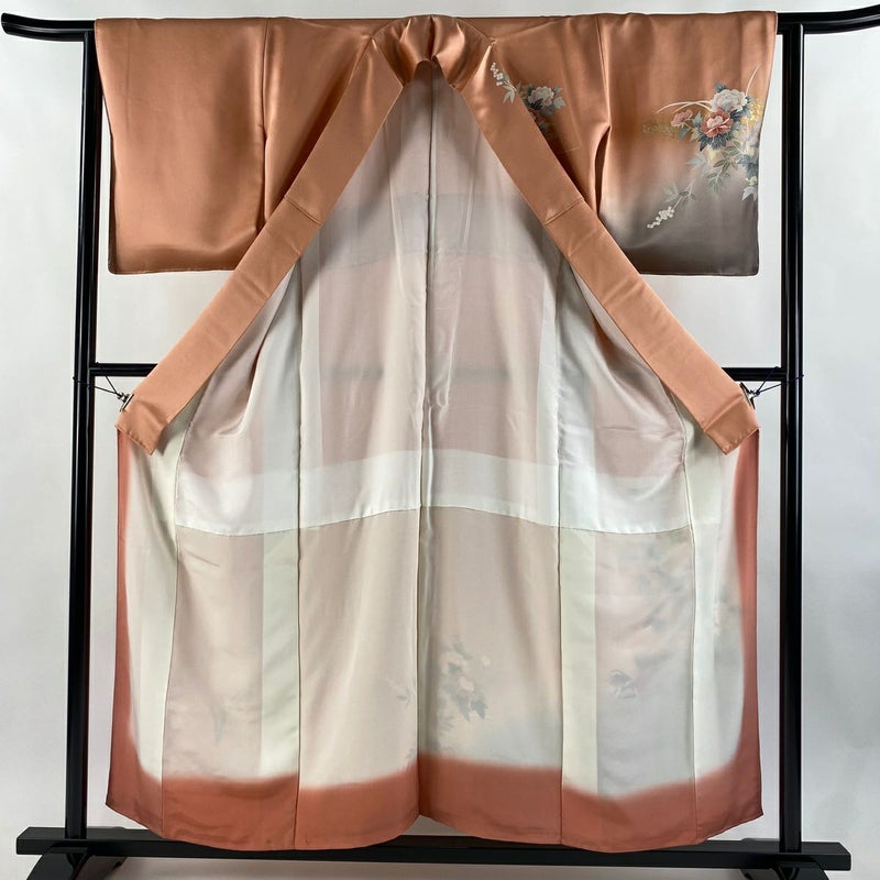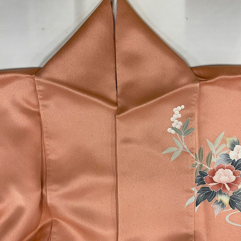 【訪問着】 赤系 サーモンピンク 秀品 B 約150cm~約159cm 裄丈63cm-64cm (S)size 袖丈48cm -3980 二万以下