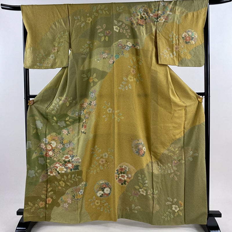 【訪問着】 灰色系 灰緑 名品 C 約160cm~約169cm 裄丈67cm-68cm (M)size 袖丈48cm 4000-7980 二万以下