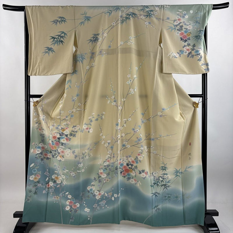 【訪問着】 白系 ベージュ 秀品 B 約160cm~約169cm 裄丈69cm以上 (L)size 袖丈50cm-60cm 7990-9980 二万以下