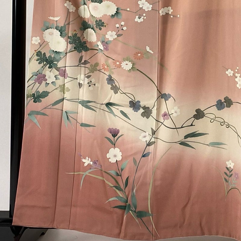 【訪問着】 赤系 薄ピンク 名品 B 約160cm~約169cm 裄丈65cm (M)size 袖丈49cm 4000-7980 二万以下