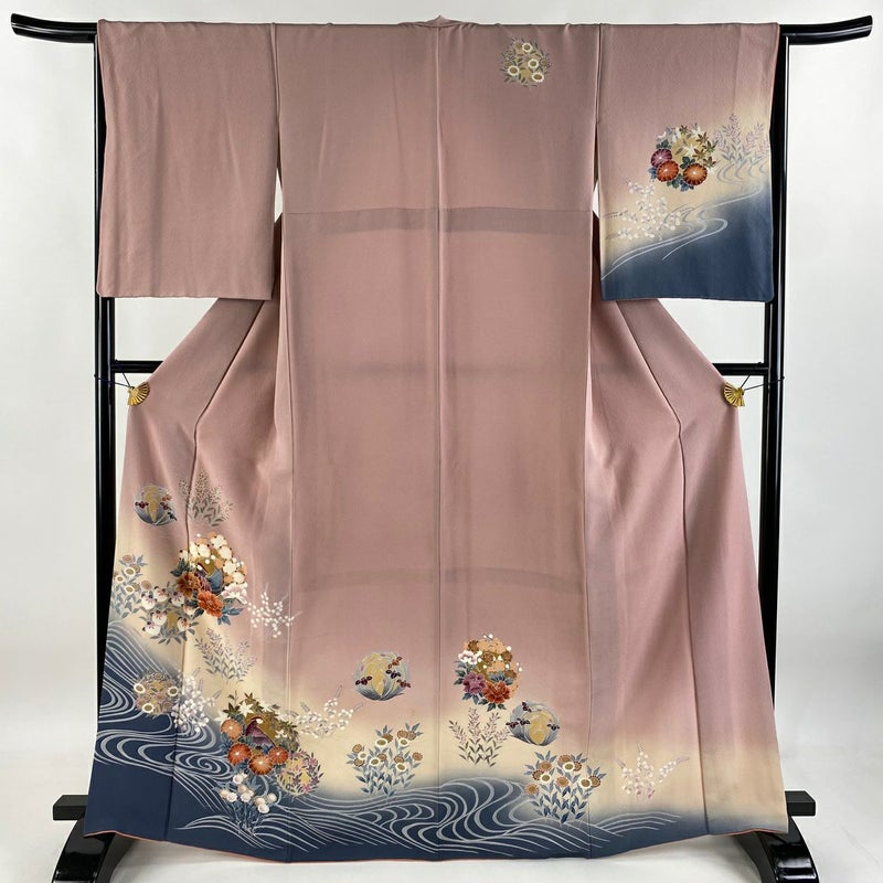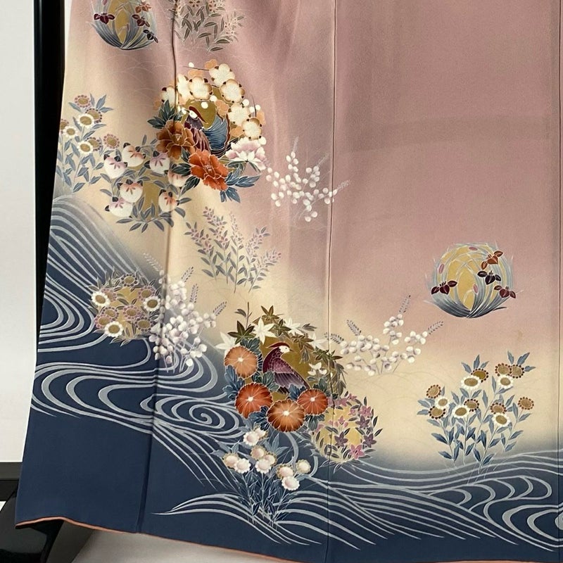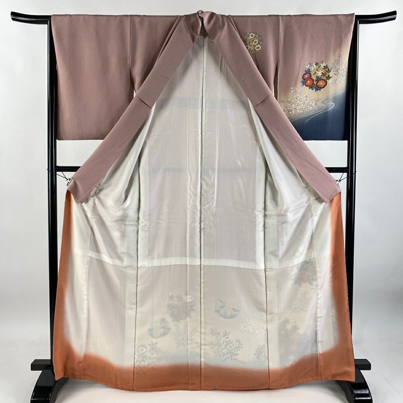 【着物ランク】優品 【素材】正絹 【身丈】約166cm 【裄丈】約66cm 【袖丈】約55cm 【袖幅】約33cm 【前幅】約24.5cm 【後幅】約30cm 【サイズ】M 【着物仕立て】袷 【着用時期】10~5月 【状態ランク】ランクB 【着物着用シーン】披露宴、パーティー、お見合い、式典、茶会