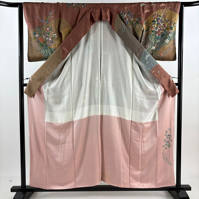 【訪問着】 赤系 赤茶 名品 C 約150cm~約159cm 裄丈63cm-64cm (S)size 袖丈48cm 4000-7980 二万以下
