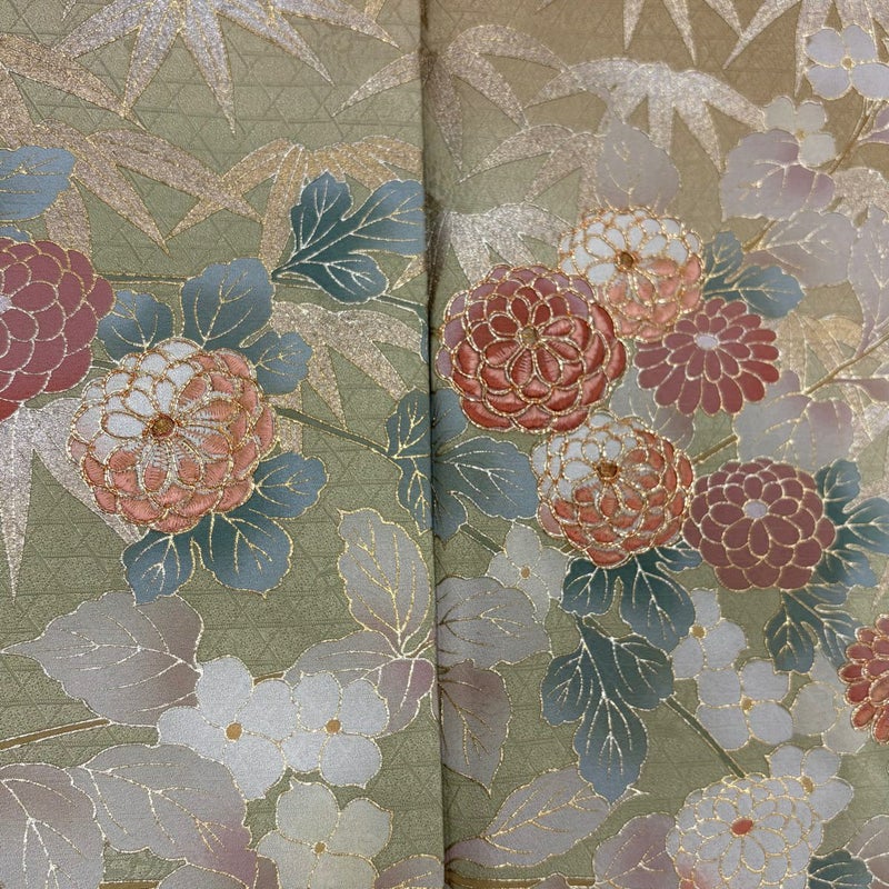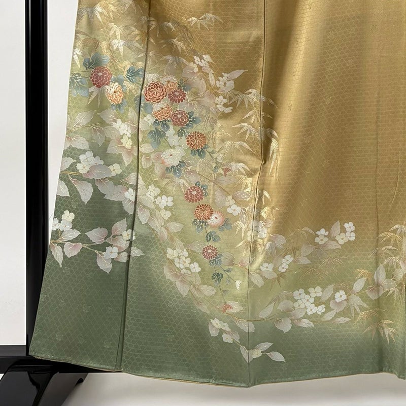 【着物ランク】名品 【素材】正絹 【身丈】約161cm 【裄丈】約62cm 【袖丈】約49cm 【袖幅】約34cm 【前幅】約24cm 【後幅】約30.5cm 【サイズ】S 【着物仕立て】袷 【着用時期】10~5月 【状態ランク】ランクB 【着物着用シーン】披露宴、パーティー、お見合い、式典、茶会