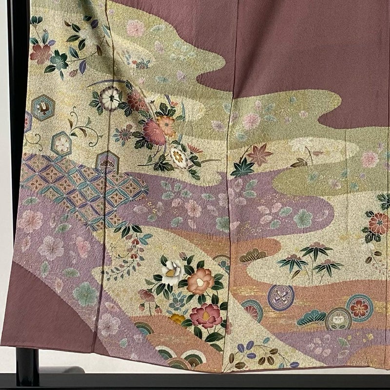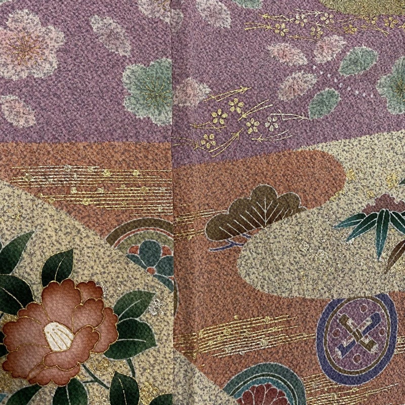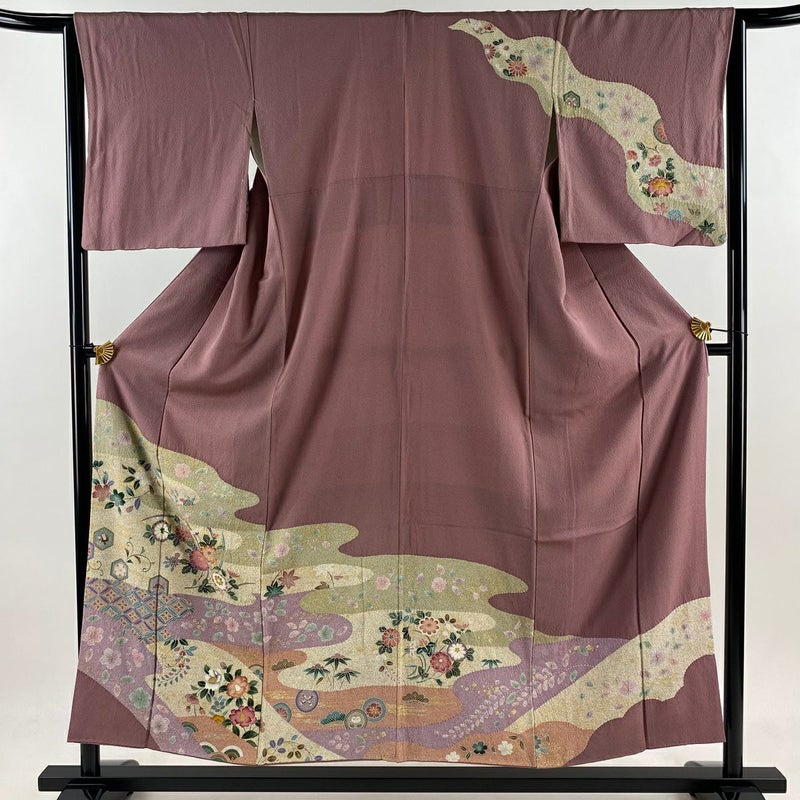 【着物ランク】秀品 【素材】正絹 【身丈】約154cm 【裄丈】約64.5cm 【袖丈】約48.5cm 【袖幅】約34.5cm 【前幅】約24cm 【後幅】約28.5cm 【サイズ】M 【着物仕立て】袷 【着用時期】10~5月 【状態ランク】ランクC 【着物着用シーン】披露宴、パーティー、お見合い、式典、茶会