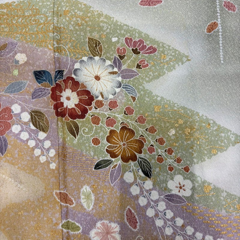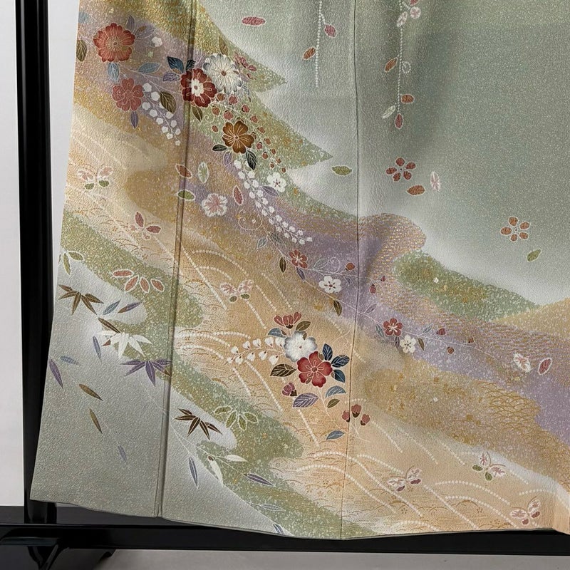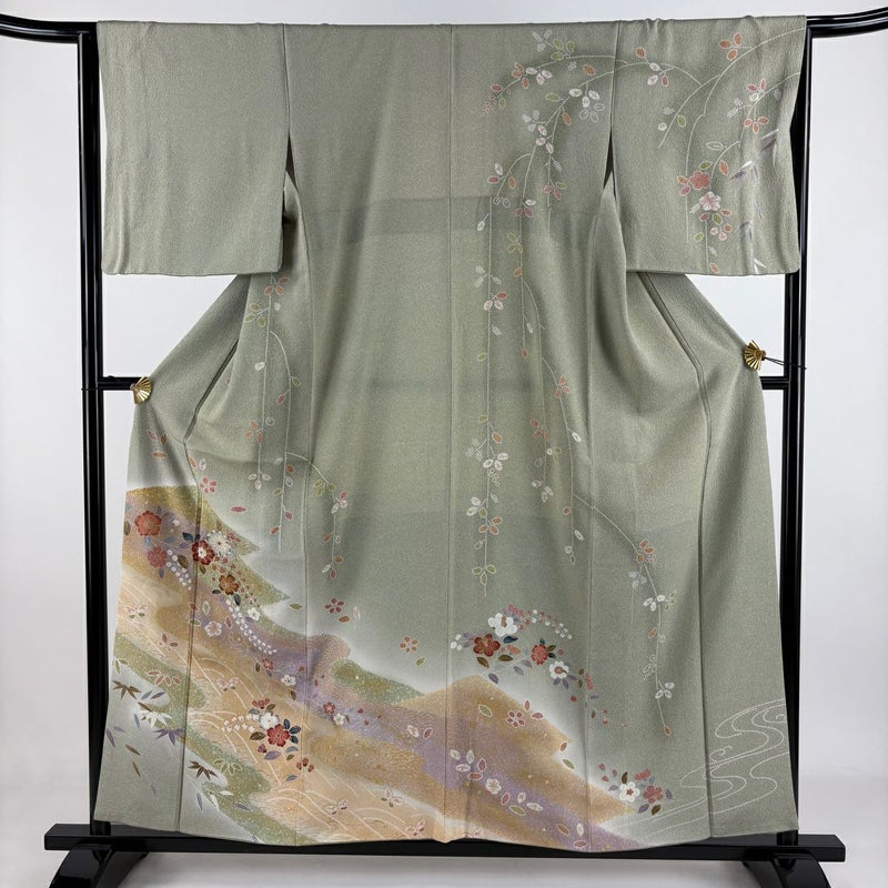 【訪問着】 灰色系 灰緑 名品 B 約150cm~約159cm 裄丈65cm (M)size 袖丈48cm 4000-7980 二万以下