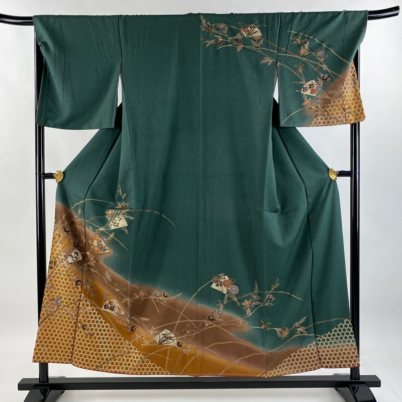 【訪問着】 緑系 深緑 秀品 B 約150cm~約159cm 裄丈67cm-68cm (L)size 袖丈48cm 7990-9980 二万以下