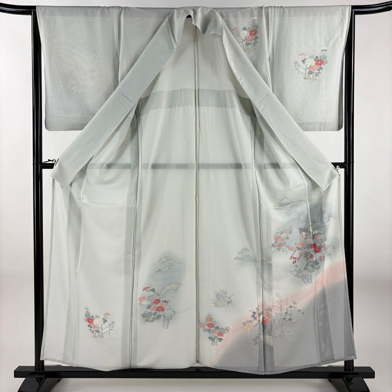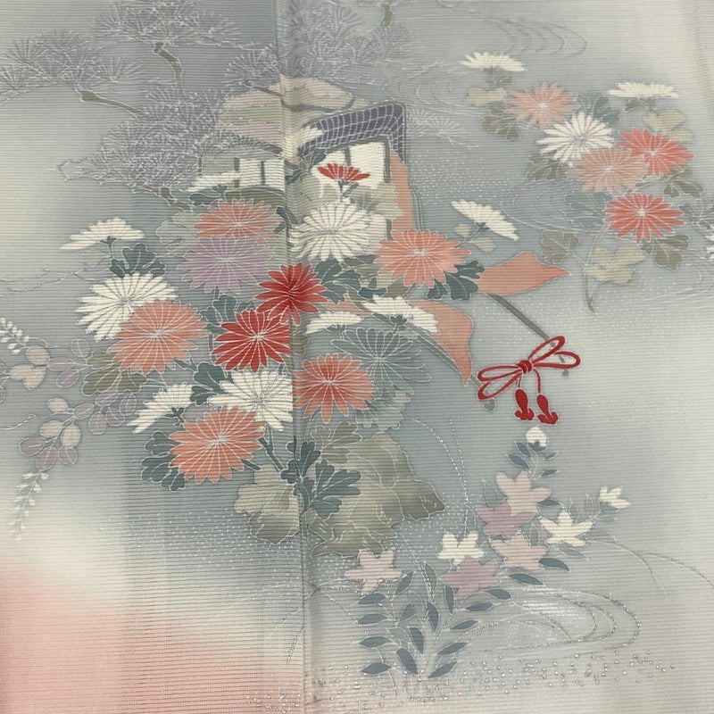 【訪問着】 灰色系 青灰色 優品 C 約150cm~約159cm 裄丈65cm (M)size 袖丈50cm-60cm 4000-7980 二万以下