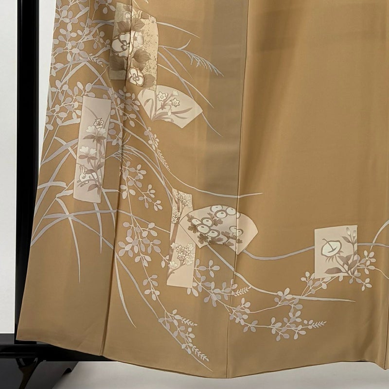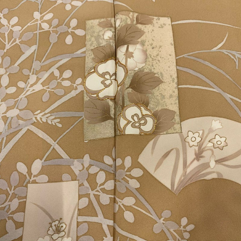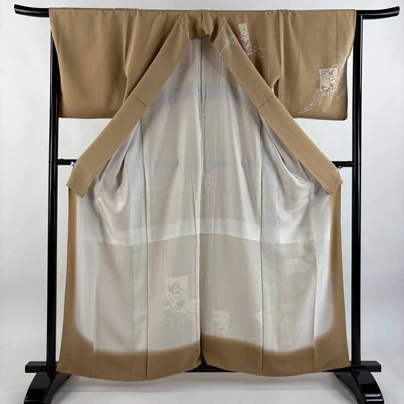 【訪問着】 茶系 薄茶色 秀品 B 約160cm~約169cm 裄丈66cm (M)size 袖丈48cm -3980 二万以下