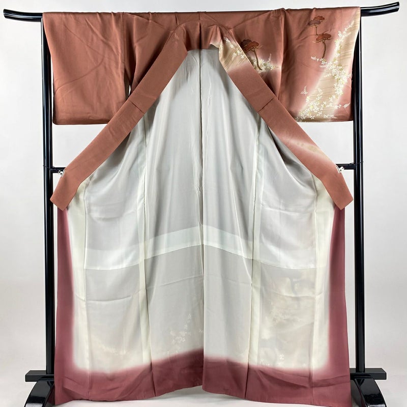 【訪問着】 赤系 薄小豆 秀品 B 約160cm~約169cm 裄丈67cm-68cm (M)size 袖丈47cm -3980 二万以下