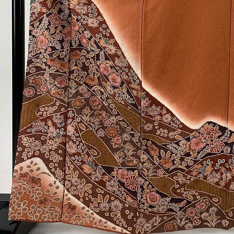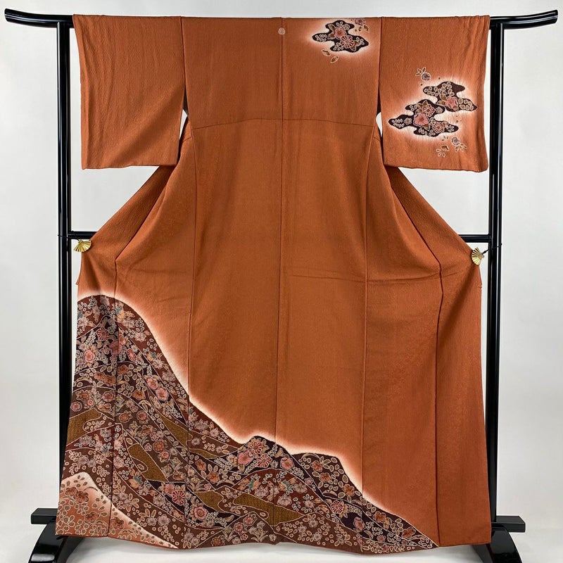 【着物ランク】秀品 【素材】正絹 【身丈】約164.5cm 【裄丈】約62.5cm 【袖丈】約47.5cm 【袖幅】約32.5cm 【前幅】約23.5cm 【後幅】約28cm 【サイズ】S 【着物仕立て】袷 【着用時期】10~5月 【状態ランク】ランクB 【着物着用シーン】披露宴、パーティー、お見合い、式典、茶会