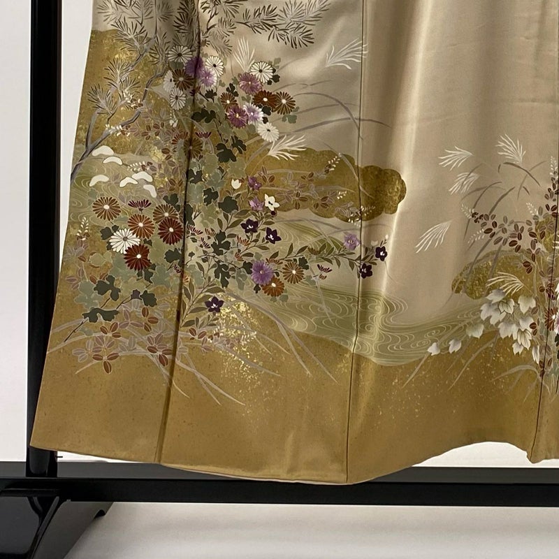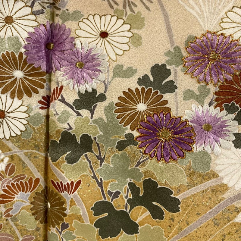【着物ランク】逸品 【素材】正絹 【身丈】約154cm 【裄丈】約64.5cm 【袖丈】約47cm 【袖幅】約32cm 【前幅】約24cm 【後幅】約30cm 【サイズ】M 【着物仕立て】袷 【着用時期】10~5月 【状態ランク】ランクC 【作家名】帝王紫 【着物着用シーン】披露宴、パーティー、お見合い、式典、茶会