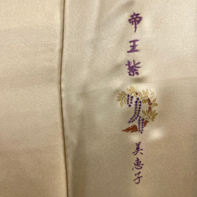 特殊な貝の色素から染め出した「帝王紫」という染料を用いた作品でございます。 帯次第で幅広くお使いいただける素敵な訪問着です。 帯により格式を変える事の出来る印象のお着物は、様々に場面で活躍してくれることでしょう。 身丈を+3.5cm程、現在の長さから伸ばせます。 裄丈を+3.5cm程、現在の長さから伸ばせます。 上前所々に刺繍糸のゆるみ、表地所々に金彩の変色がございます。 裏地両脇に汗シミがございます。 ご購入の際はその点ご留意ください。 ※なお、厳しく商品の状態確認を行っておりますが、記載の汚れ以外にも見落とし箇所がある可能性がある旨ご了承いただけますと幸いです。 沢山の商品の中からご覧いただき誠にありがとうございます。 ※為書きがございます。