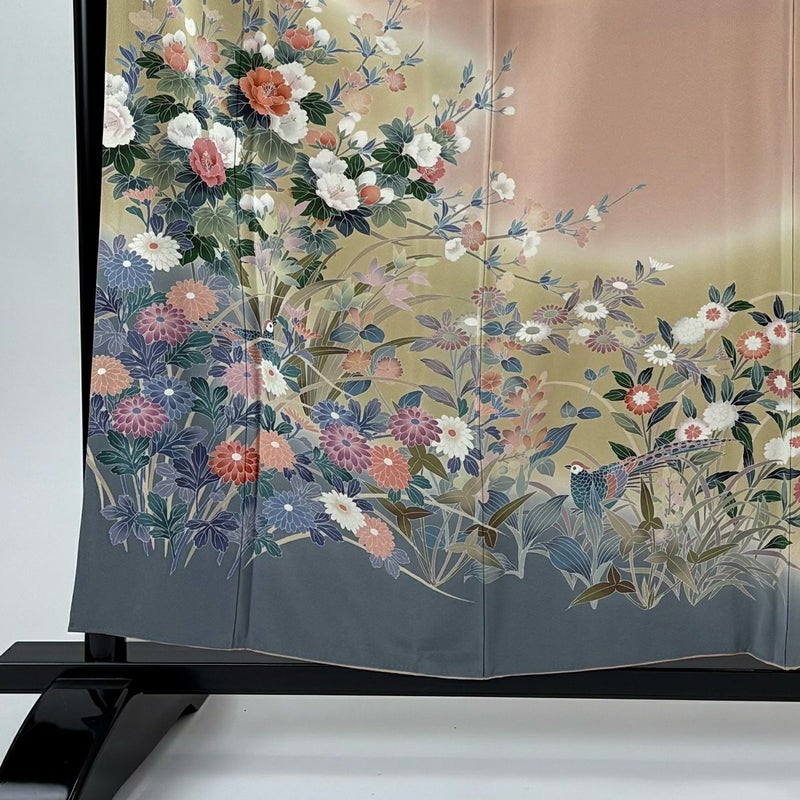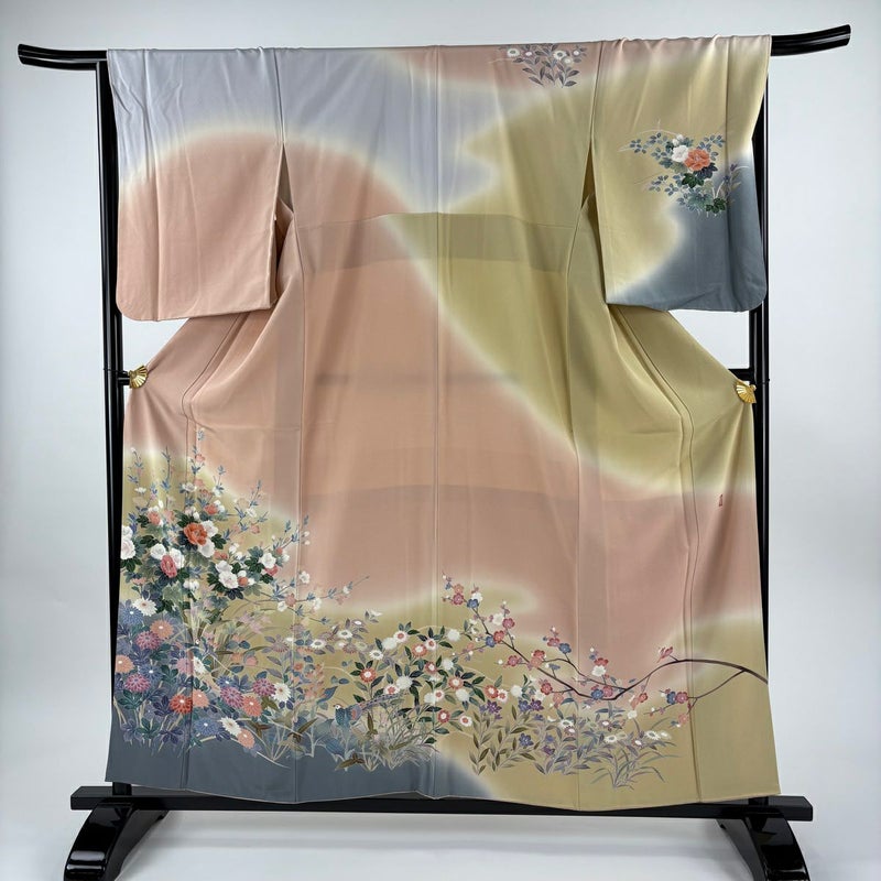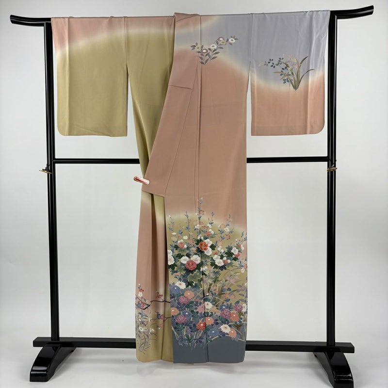 【訪問着】 赤系 ピンクベージュ 逸品 B 約150cm~約159cm 裄丈66cm (M)size 袖丈50cm-60cm 30000- 五万以下