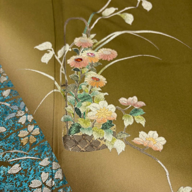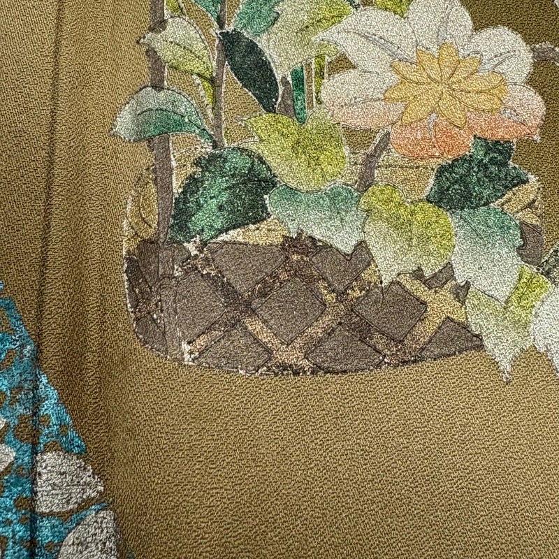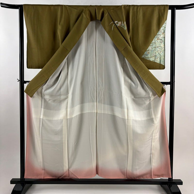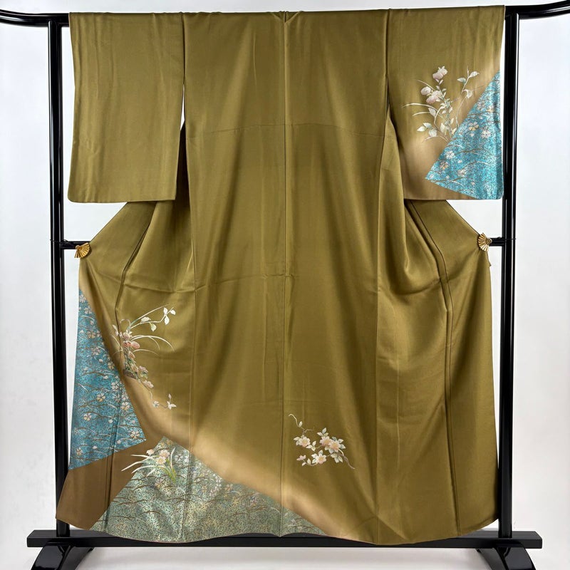 【訪問着】 茶系 茶緑色 秀品 B 約150cm~約159cm 裄丈62cm以下 (S)size 袖丈50cm-60cm 7990-9980 二万以下