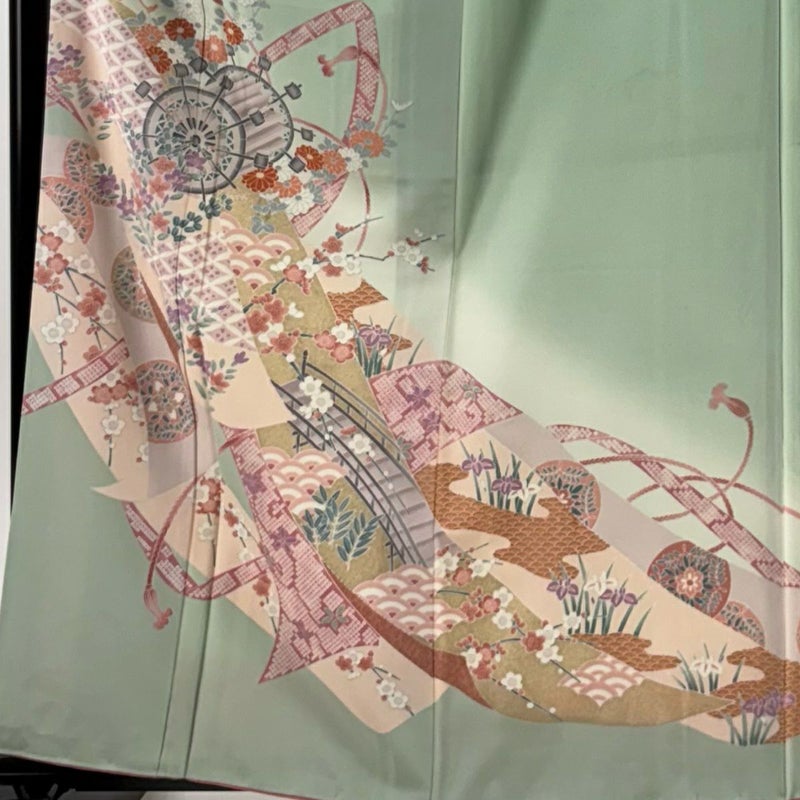 【訪問着】 緑系 薄緑 優品 B 約160cm~約169cm 裄丈66cm (M)size 袖丈49cm 4000-7980 二万以下