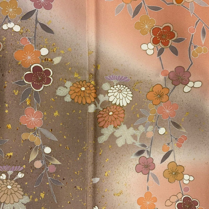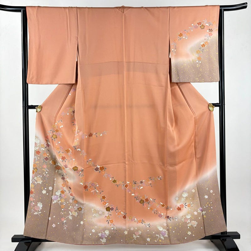 【訪問着】 赤系 サーモンピンク 秀品 B 約160cm~約169cm 裄丈63cm-64cm (M)size 袖丈50cm-60cm 7990-9980 二万以下