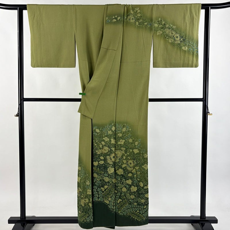 【訪問着】 緑系 鶯色 逸品 A 約150cm~約159cm 裄丈63cm-64cm (S)size 袖丈46cm以下 30000- 美品 五万以上