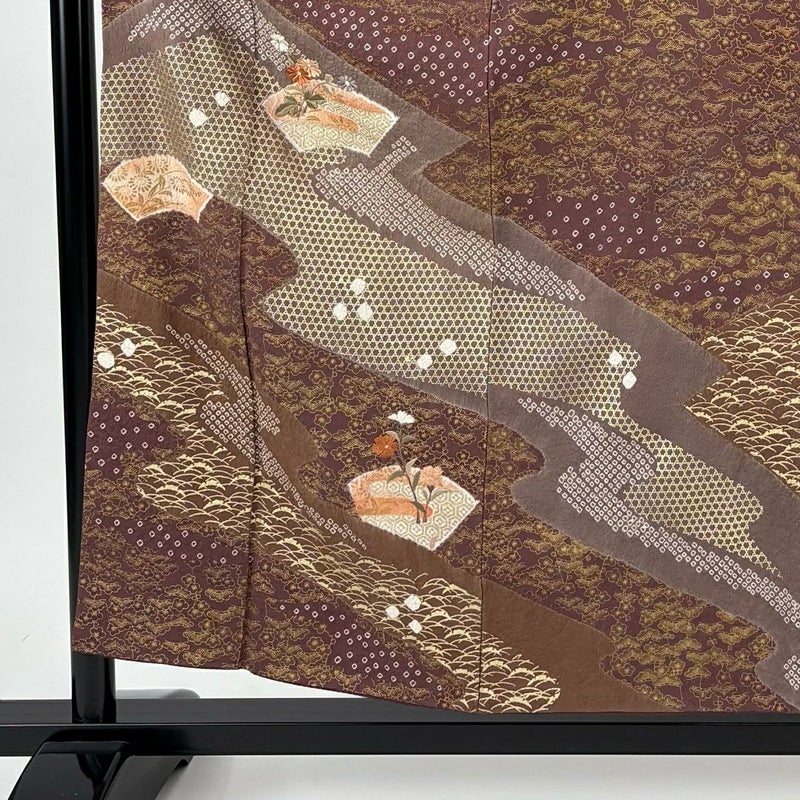 【訪問着】 茶系 茶紫 秀品 B 約150cm~約159cm 裄丈63cm-64cm (S)size 袖丈49cm 7990-9980 二万以下