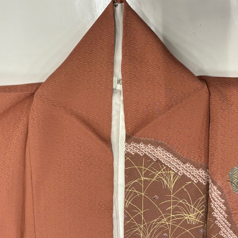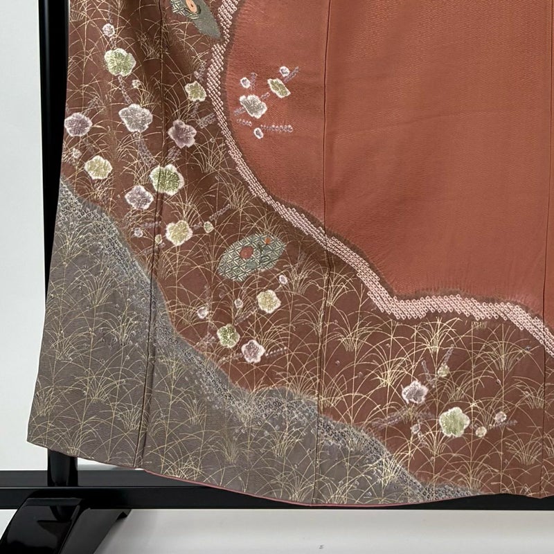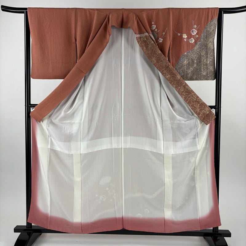 【訪問着】 赤系 小豆色 秀品 B 約150cm~約159cm 裄丈65cm (M)size 袖丈49cm 7990-9980 二万以下