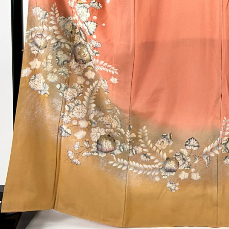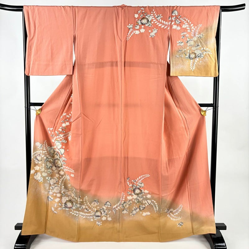 【訪問着】 赤系 サーモンピンク 秀品 B 約160cm~約169cm 裄丈67cm-68cm (M)size 袖丈48cm 7990-9980 二万以下