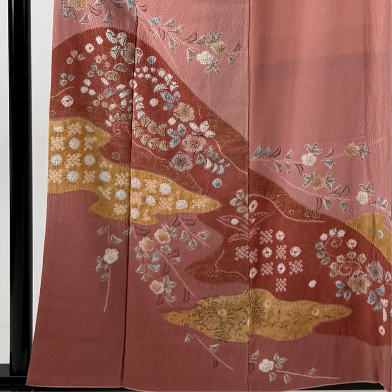 【訪問着】 赤系 ピンク 名品 B 約150cm~約159cm 裄丈63cm-64cm (S)size 袖丈50cm-60cm 9990-29990 二万以下