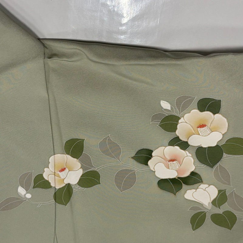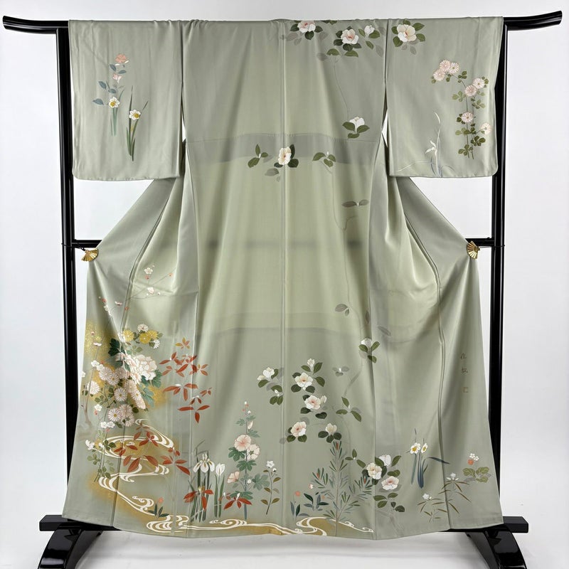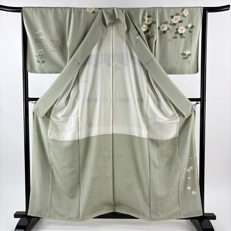 【訪問着】 緑系 よもぎ色 秀品 B 約160cm~約169cm 裄丈65cm (M)size 袖丈49cm 7990-9980 二万以下
