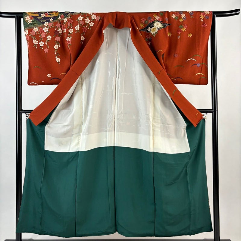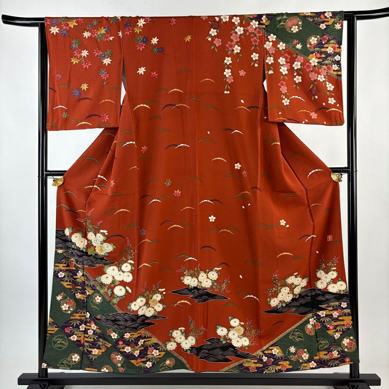 【訪問着】 赤系 朱色 名品 A 約150cm~約159cm 裄丈62cm以下 (S)size 袖丈49cm 9990-29990 美品 二万以下