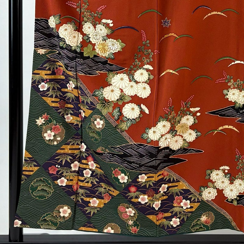 【着物ランク】名品 【素材】正絹 【身丈】約154cm 【裄丈】約62cm 【袖丈】約49.5cm 【袖幅】約32cm 【前幅】約25cm 【後幅】約29.5cm 【サイズ】S 【着物仕立て】袷 【着用時期】10~5月 【状態ランク】ランクA 【作家名】花井幸子 【着物着用シーン】披露宴、パーティー、お見合い、式典、茶会