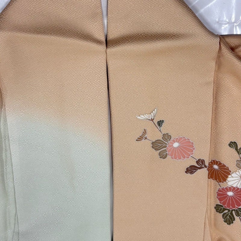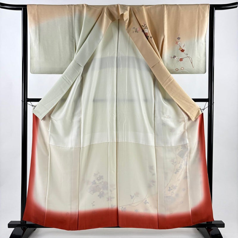 【訪問着】 赤系 薄オレンジ 秀品 B 約160cm~約169cm 裄丈63cm-64cm (S)size 袖丈49cm -3980 二万以下