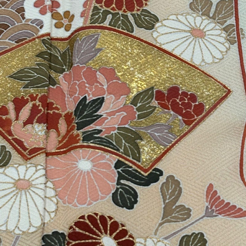 【着物ランク】秀品 【素材】正絹 【身丈】約160cm 【裄丈】約63.5cm 【袖丈】約49.5cm 【袖幅】約33cm 【前幅】約24cm 【後幅】約30cm 【サイズ】S 【着物仕立て】袷 【着用時期】10~5月 【状態ランク】ランクB 【着物着用シーン】披露宴、パーティー、お見合い、式典、茶会