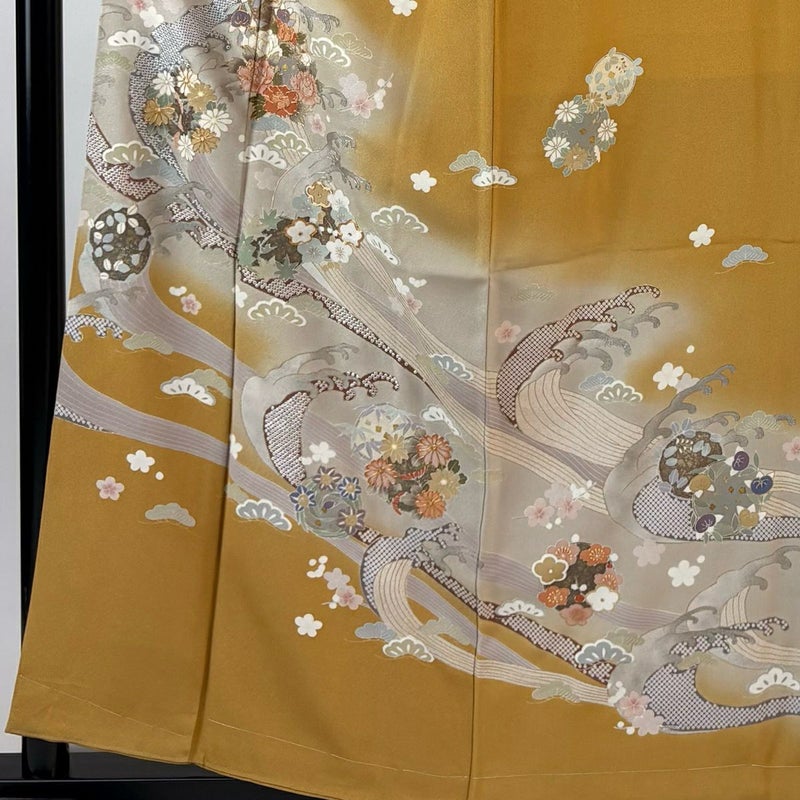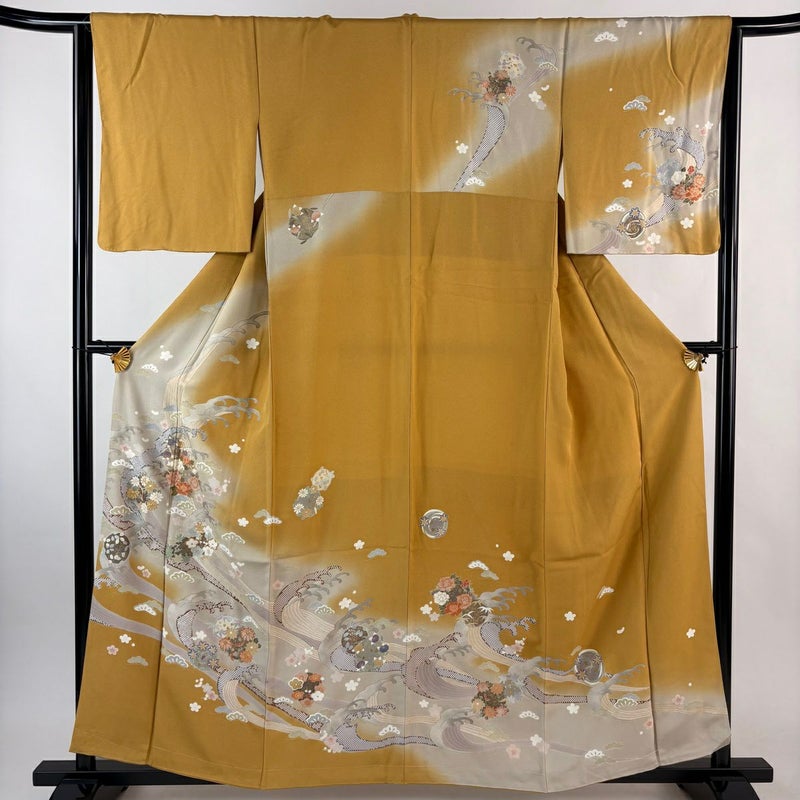 【訪問着】 黄色系 山吹色 秀品 B 約150cm~約159cm 裄丈63cm-64cm (M)size 袖丈48cm 7990-9980 二万以下