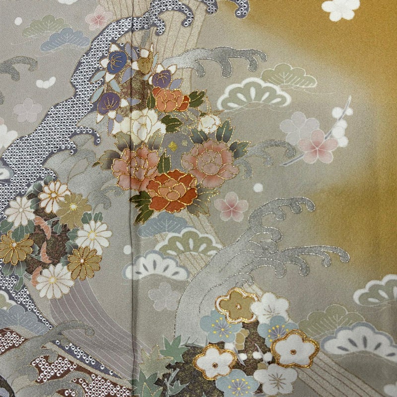 【着物ランク】秀品 【素材】正絹 【身丈】約159cm 【裄丈】約64cm 【袖丈】約48.5cm 【袖幅】約32.5cm 【前幅】約24cm 【後幅】約29.5cm 【サイズ】M 【着物仕立て】袷 【着用時期】10~5月 【状態ランク】ランクB 【着物着用シーン】披露宴、パーティー、お見合い、式典、茶会