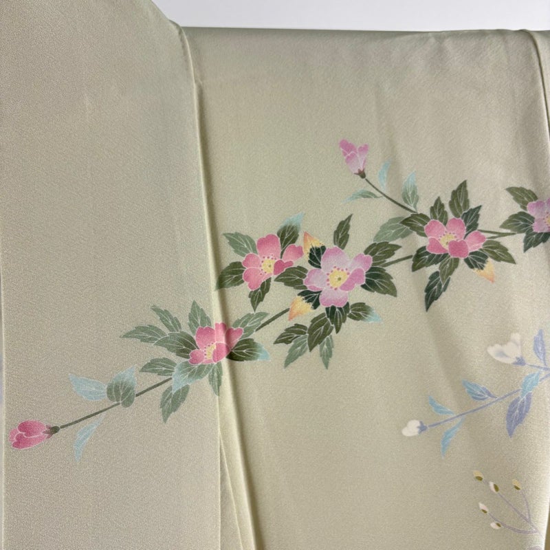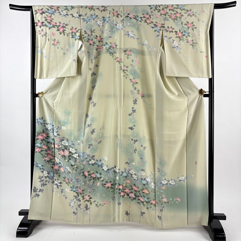 【着物ランク】逸品 【素材】正絹 【身丈】約164cm 【裄丈】約66cm 【袖丈】約56cm 【袖幅】約34cm 【前幅】約24cm 【後幅】約29.5cm 【サイズ】M 【着物仕立て】袷 【着用時期】10~5月 【状態ランク】ランクA 【着物着用シーン】披露宴、パーティー、お見合い、式典、茶会
