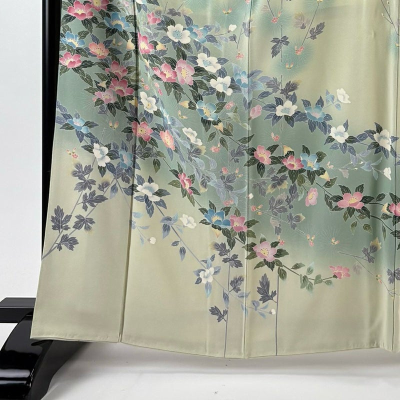 【訪問着】 灰色系 灰緑 逸品 A 約160cm~約169cm 裄丈66cm (M)size 袖丈50cm-60cm 30000- 美品 五万以下