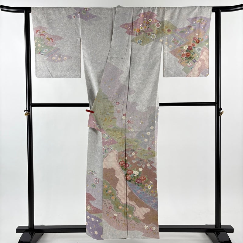 【訪問着】 灰色系 灰色 逸品 B 約150cm~約159cm 裄丈63cm-64cm (M)size 袖丈48cm 30000- 五万以上