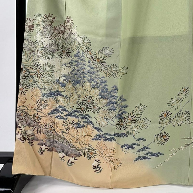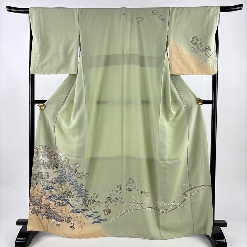 【訪問着】 緑系 薄緑 優品 B 約160cm~約169cm 裄丈66cm (M)size 袖丈49cm 4000-7980 二万以下