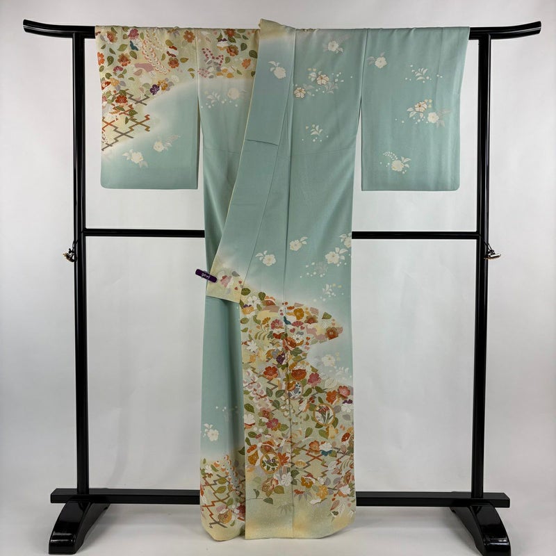 【訪問着】 青系 水色 逸品 B 約160cm~約169cm 裄丈63cm-64cm (M)size 袖丈50cm-60cm 30000- 五万以上