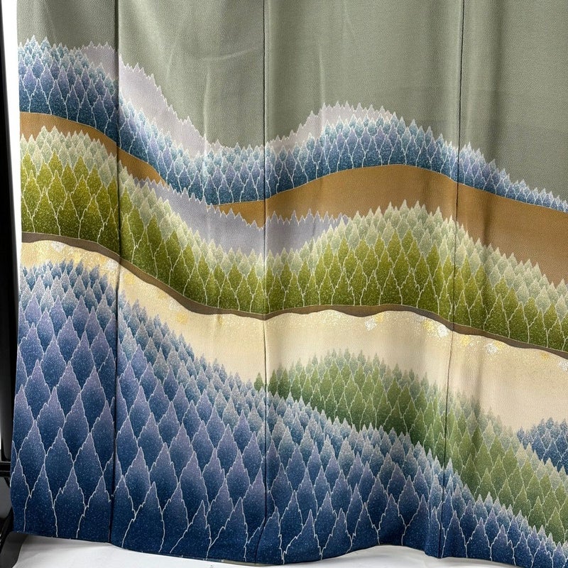 【訪問着】 灰色系 灰緑 逸品 B 約160cm~約169cm 裄丈65cm (M)size 袖丈48cm 30000- 五万以下