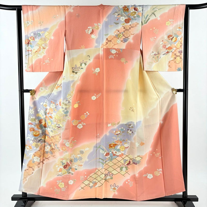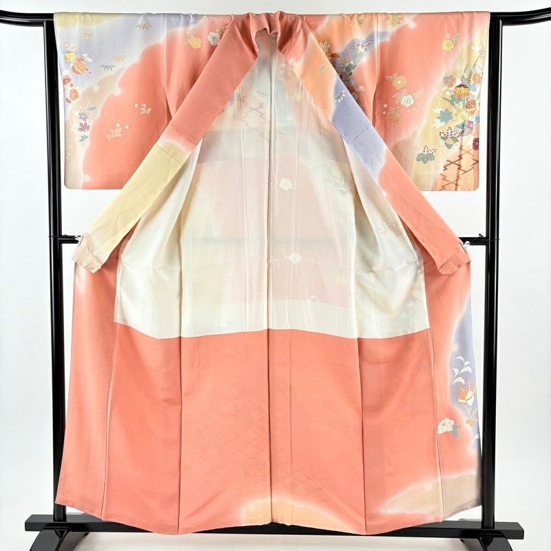 【訪問着】 赤系 サーモンピンク 逸品 C 約150cm~約159cm 裄丈65cm (M)size 袖丈50cm-60cm 30000- 五万以上