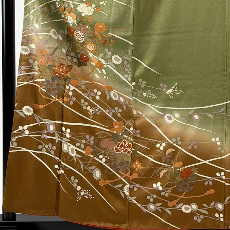 【訪問着】 緑系 鶯色 秀品 B 約150cm~約159cm 裄丈63cm-64cm (S)size 袖丈50cm-60cm 7990-9980 二万以下
