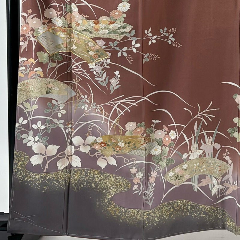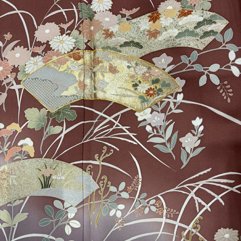 【着物ランク】名品 【素材】正絹 【身丈】約162cm 【裄丈】約64cm 【袖丈】約49cm 【袖幅】約33cm 【前幅】約24.5cm 【後幅】約30.5cm 【サイズ】M 【着物仕立て】袷 【着用時期】10~5月 【状態ランク】ランクB 【着物着用シーン】披露宴、パーティー、お見合い、式典、茶会