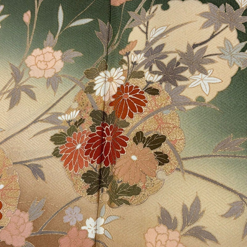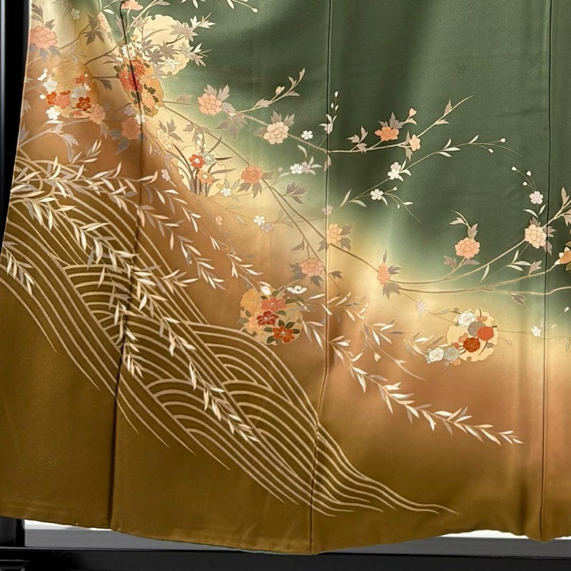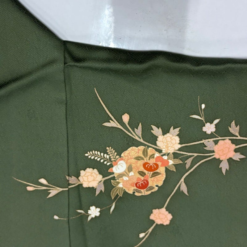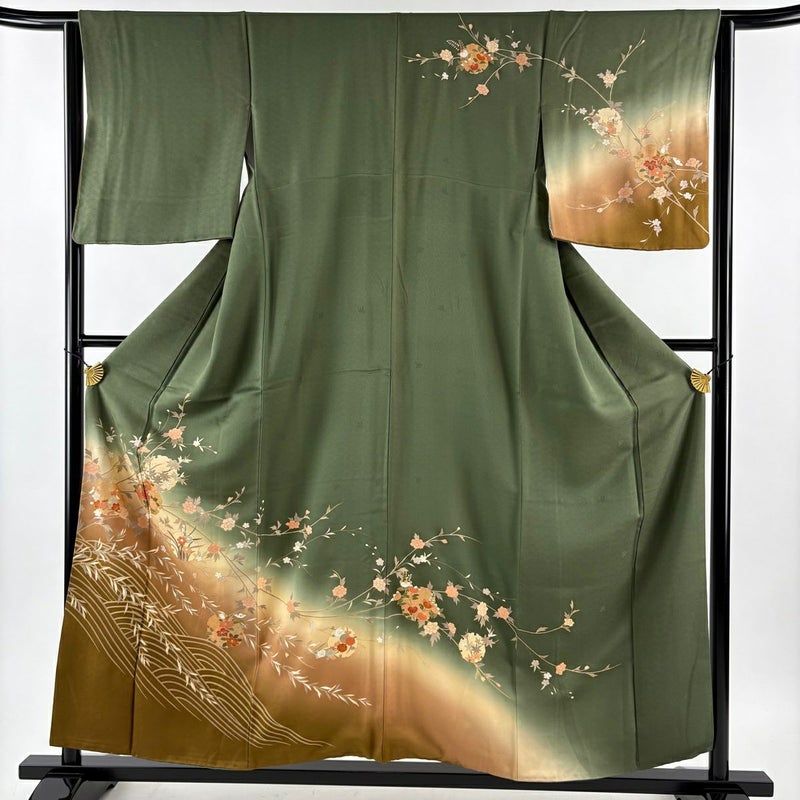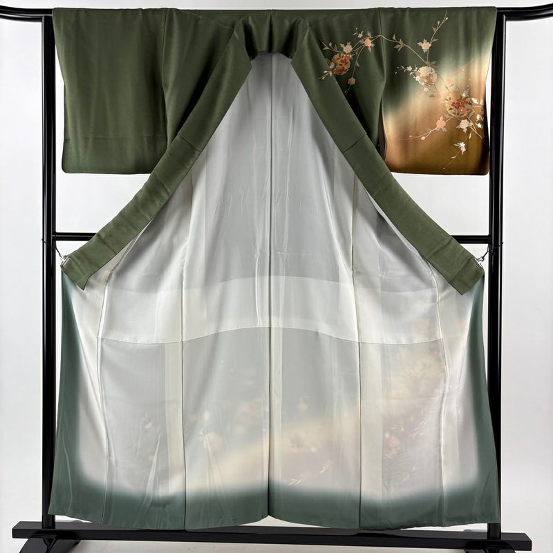 【訪問着】 緑系 鶯色 秀品 B 約150cm~約159cm 裄丈63cm-64cm (M)size 袖丈49cm 7990-9980 二万以下