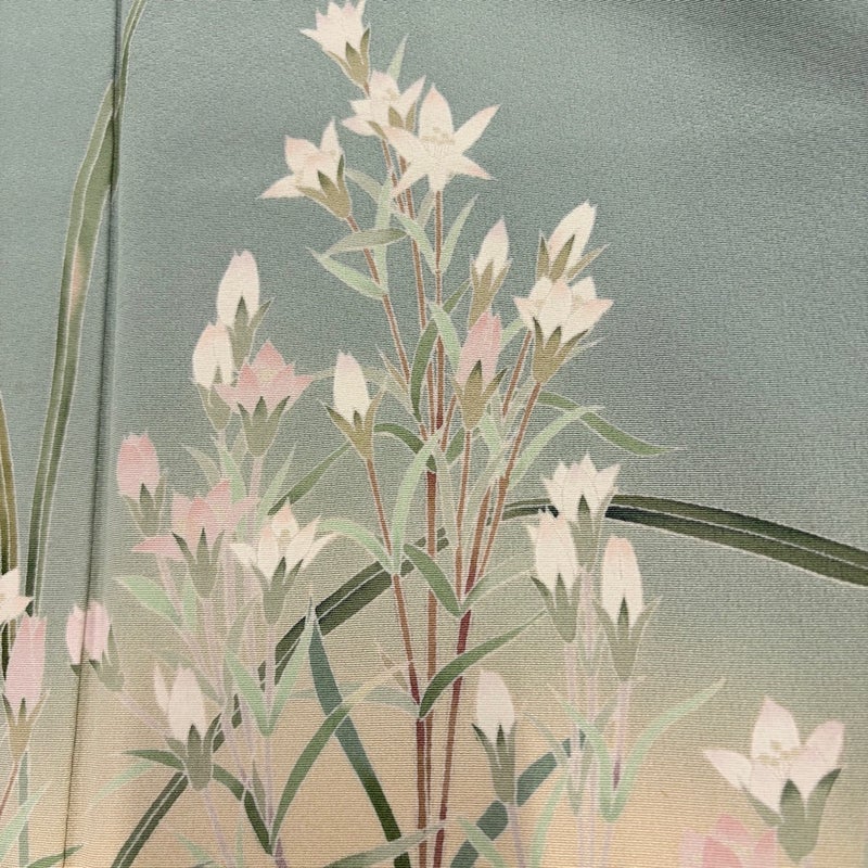 【訪問着】 灰色系 灰緑 名品 B 約150cm~約159cm 裄丈63cm-64cm (M)size 袖丈48cm 9990-29990 二万以下