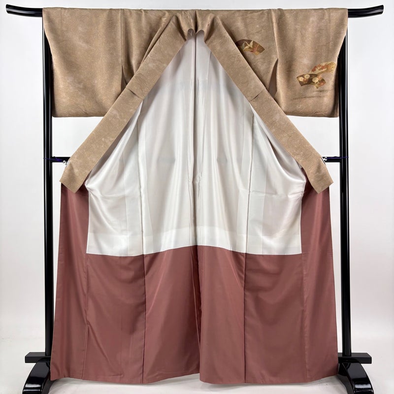 【訪問着】 茶系 薄茶色 優品 B 約160cm~約169cm 裄丈67cm-68cm (M)size 袖丈48cm 4000-7980 二万以下