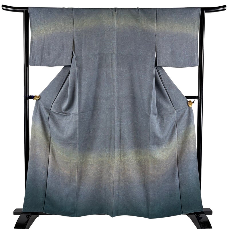 【訪問着】 灰色系 灰緑 名品 A 約160cm~約169cm 裄丈63cm-64cm (M)size 袖丈46cm以下 9990-29990 美品 二万以下